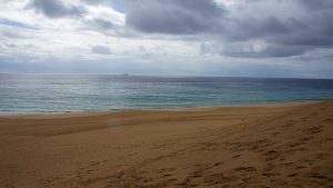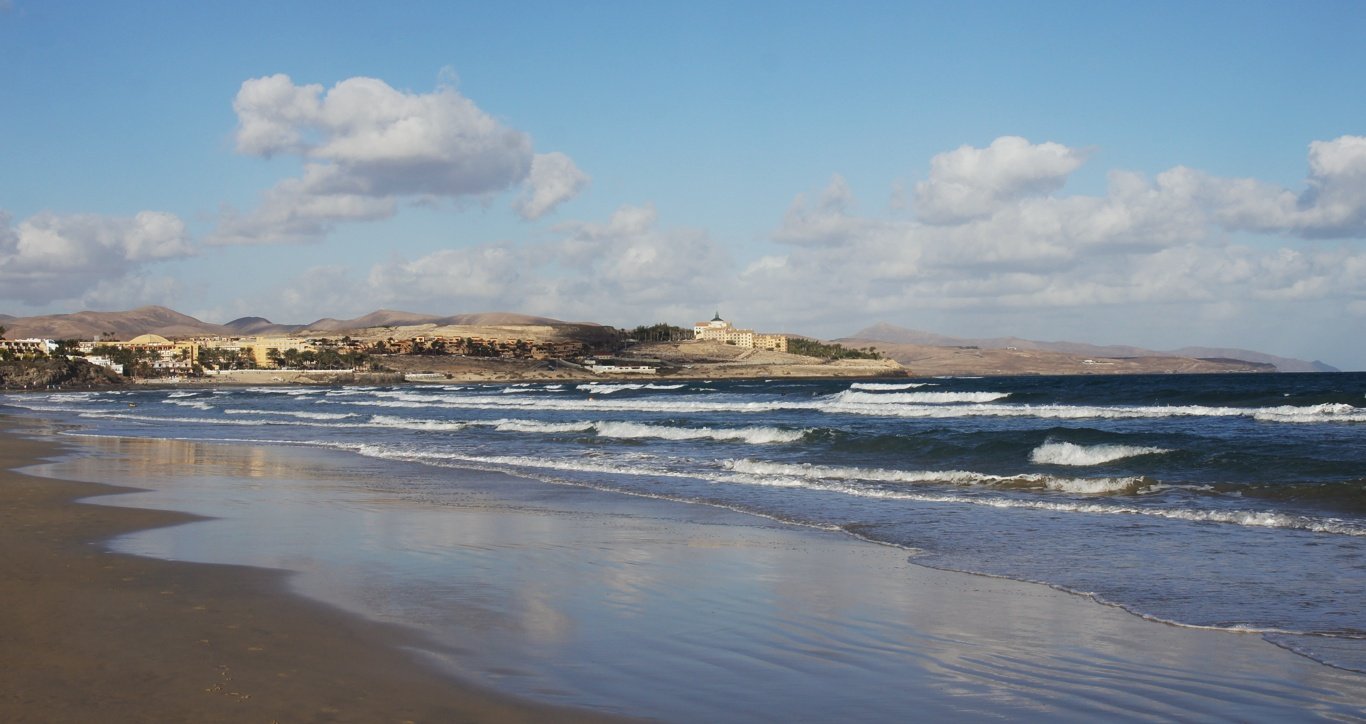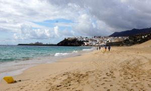 Wenig später können wir einen ausgedehnten, sonnigen Spaziergang am langen, breiten Sandstrand von Jandia genießen.